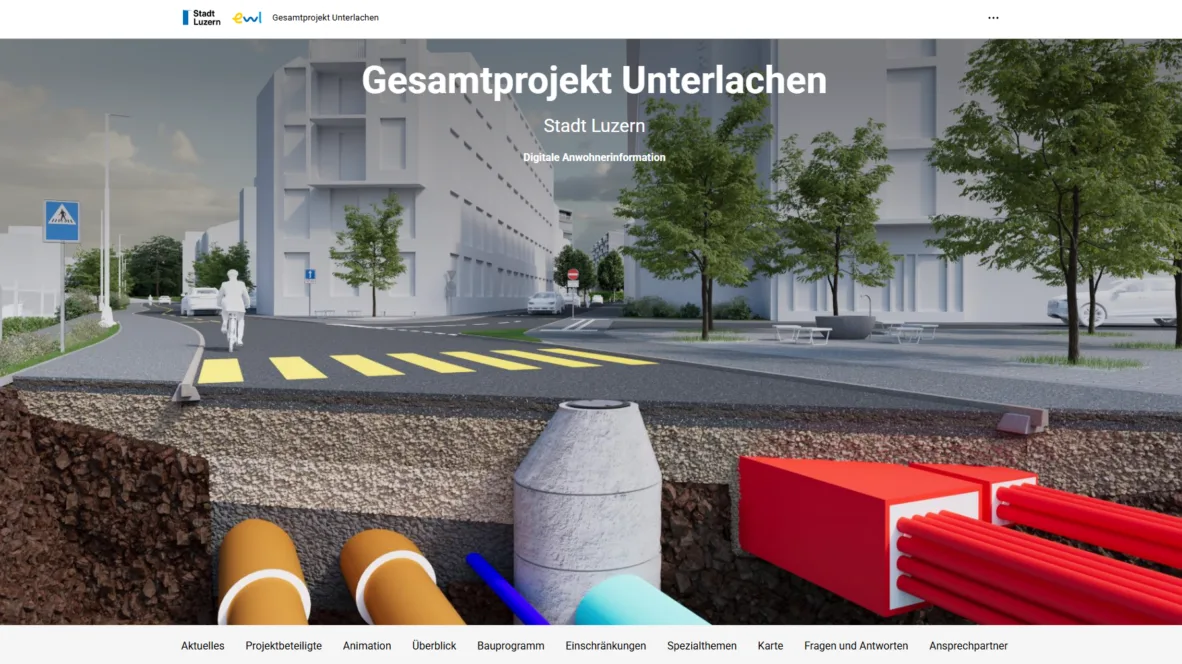 Zur Kommunikation mit Anwohnenden und Interessierten setzen die Stadt Luzern und ewl energie wasser luzern auf eine digitale Anwohnerinformation. Die webbasierte Plattform bietet eine detaillierte Übersicht über die verschiedenen Bauphasen. Sie informiert zudem einfach, aktuell und jederzeit zugänglich über die Verkehrsführung und mögliche Einschränkungen im Rahmen der Arbeiten. Interessierte können über die Plattform auch Baustellen-News abonnieren, um aktiv und zeitnah über Neuigkeiten zu den Bauarbeiten informiert zu sein.