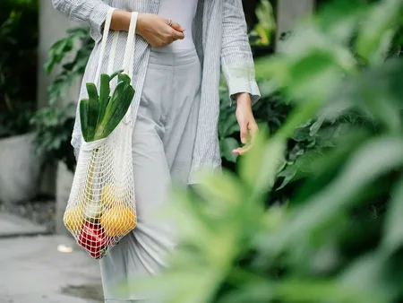 • Konsumgüter: regionale und saisonale Lebensmittel kaufen, Konsumgüter lange benutzen.